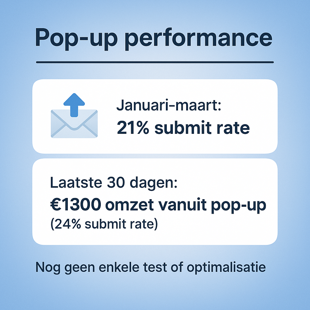 → €1600 gegenereerd vanuit de pop-up